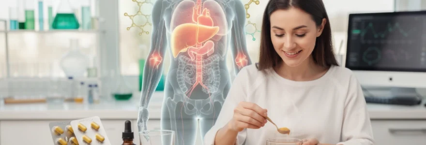 Le système du cytochrome P450 regroupe une famille d’enzymes impliquées dans le métabolisme de nombreux médicaments, hormones stéroïdiennes et xénobiotiques. Selon les isoformes ciblées, la curcumine peut exercer un effet inhibiteur ou inducteur modéré sur certaines de ces enzymes. Cette modulation est à double tranchant : d’un côté, elle peut protéger l’organisme contre la formation de métabolites toxiques ; de l’autre, elle peut théoriquement modifier la vitesse de dégradation de certains médicaments.